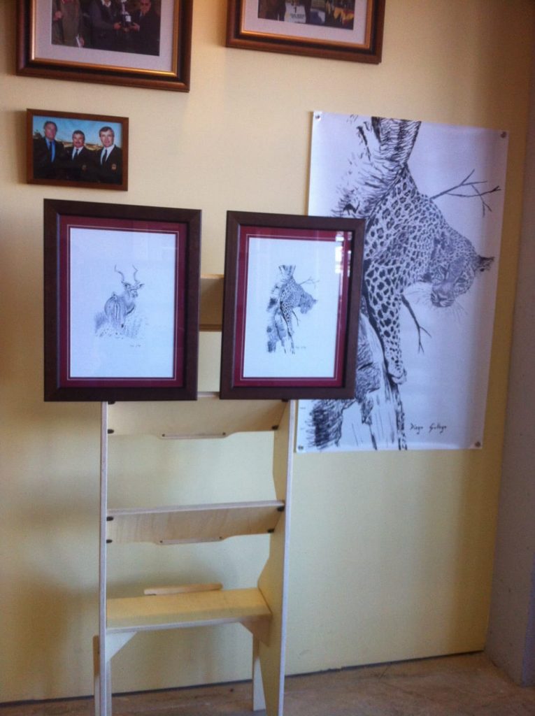 Los temas principales sobre los que se centra sus láminas de plumilla son la caza mayor, cetrería y rapaces, caballos, caza africana, toros y rejoneo, caza menor, especies protegidas y caza internacional. Los dibujos a plumilla se realizan en papel cauché 300 g de 320 x 425 mm, con un marco de madera de nogal y con vidrio brillo 3 mm. El tamaño de dibujo es de unos 200 x 200 mm dependiendo del dibujo. El de la lámina enmarcada es de 1,7 kg.